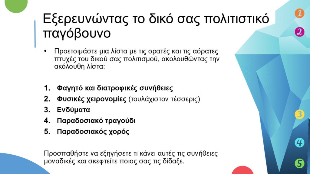 Δραστηριότητα 1. Εξερευνήστε τον δικό σας πολιτισμικό παγόβουνο